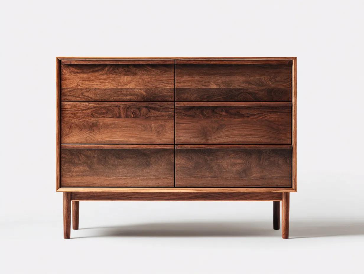 Los seis cajones proporcionan espacio de almacenamiento organizado para ropa, textiles y accesorios. El diseño frontal limpio sin tiradores visibles aporta un aspecto moderno y ordenado. La base elevada facilita la limpieza del suelo y mejora la estabilidad general del mueble.